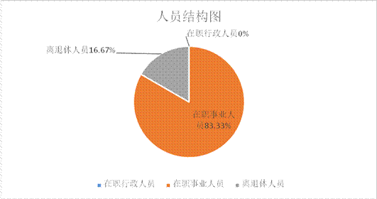 截止2018年底,本部门人员编制6人,其中行政编制0人、事业编制6人;实有人员5人,其中行政0人、事业5人,单位管理的离退休人员1人。