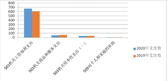 2020年本部门预算支出756.55万元,其中一般公共预算拨款支出756.55万元,政府性基金预算拨款支出0万元,2020年本部门预算收入较上年增加55.28万元,主要原因是人员工资较上年上涨及实行新会计制度之后,我单位的财务软件、国有资产软件维护费用增加。
