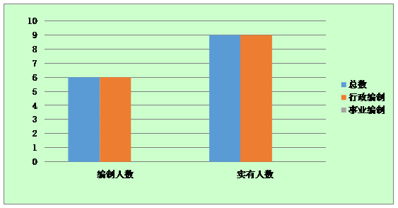 截止2019年底,本部门人员编制6人,其中行政编制6人、事业编制0人;实有人员9人,其中行政9人、事业0人。涉及人员划转的部门,人员划转手续未办结的,仍在原部门单位进行说明。