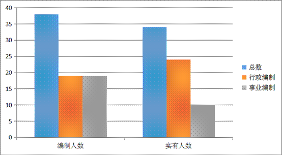 截止2019年底,本部门人员编制38人,其中行政编制19人、事业编制19人;实有人员34人,其中行政24人、事业10人。