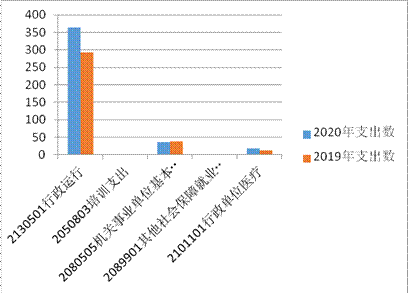 2020年本部门预算支出446.33万元,其中一般公共预算拨款支出446.33万元,政府性基金预算拨款支出0万元,2020年本部门预算收入较上年增加103.57万元:主要原因是在编在职工作人员工资标准提高及行政运行费用增加、社保缴费增加。