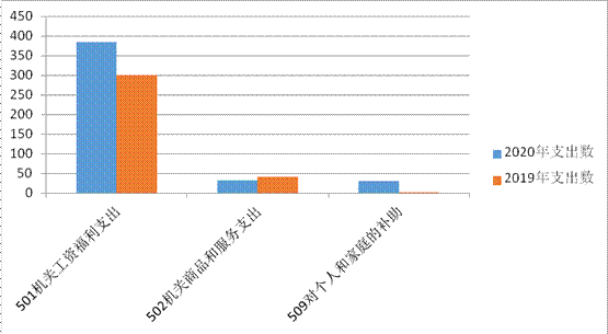 2020年本部门一般公共预算拨款支出446.33万元,较上年增加103.57万元,主要原因是在编在职工作人员工资标准提高及行政运行费用增加、社保缴费增加。