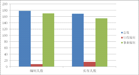 截止2019年底,本部门人员编制178人,其中行政编制8人、事业编制170人;实有人员169人,其中行政15人、事业154人。