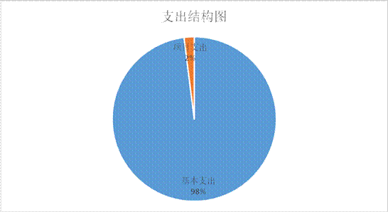 2019年度支出合计117.68万元,其中:基本支出115.67万元,是为保障机构正常运转,完成日常工作任务而发生的各项支出,包括人员经费和公用经费,占总支出的98%,项目支出2.01万元,主要是办公设备购置,占总支出的2%。