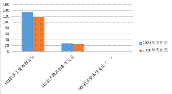 机关工资福利支出(501)135.07万元,较上年增加16.46万元,原因是正常人员调资晋档带来的人员经费增长及奖金包含在内;
