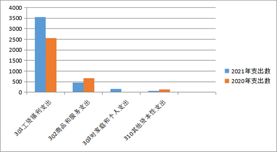 工资福利支出(301)3559.29万元,较上年增加1007.89万元,原因是:工资及其他福利支出增加,养老保险等社会保障缴费递增。2021年专项预算中人员支出702.95万元,为工资福利支出;