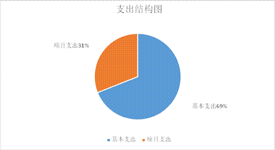 3.本年度支出构成情况。2020年本年支出合计104.81万元。其中:基本支出72.01万元,占总支出的69%,项目支出32.8万元,占总支出的31%。