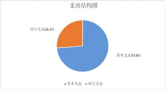 3.本年度支出构成情况。2020年支出合计744.55万元,其中:基本支出549.55万元,占总支出的73.8%,主要是为保障机构正常运转、完成日常工作任务而发生的各项支出,包括人员经费和公用经费;项目支出195万元,占总支出的26.2%,主要是为完成特定的工作任务或事业发展目标,财政预算专款安排的支出,包括普法宣传、人民调解、社区矫正和法律援助等专项支出。