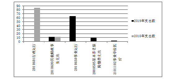 (1)行政运行(2010601)0万元,较上年减少85.15万元,原因是2018年使用行政运行,在2019年功能分类科目调整到事业运行。