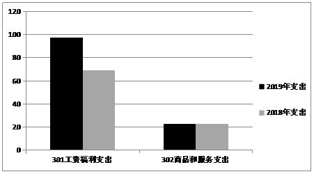 工资福利支出(301)97.73万元,较上年增加28.66万元,原因是1、新调入人员及正常调资晋档带来的人员经费增加9.13万元, 2、其他工资福利支出增加4.5万元,3、住房公积金增加1.49万元,4、年度会计科目调整引起变化13.54万元。