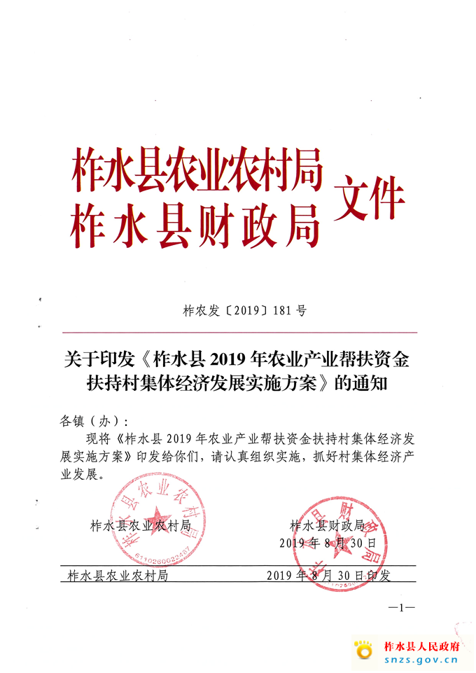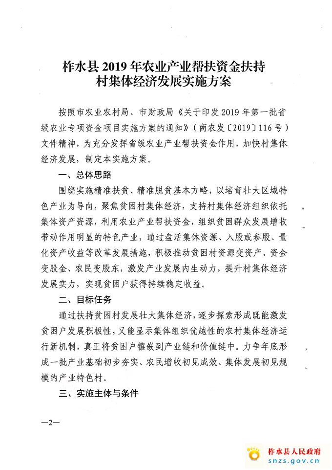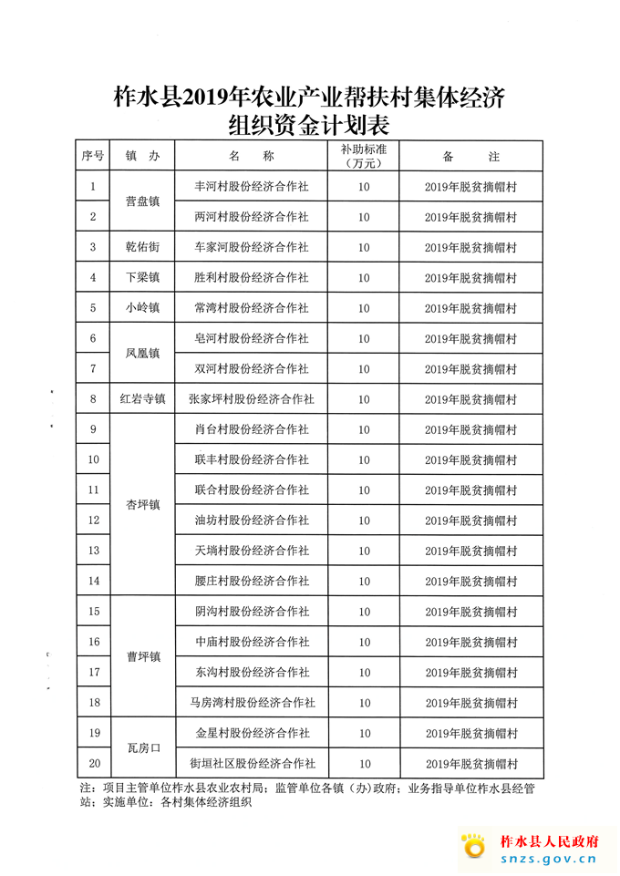 2019年农业产业帮扶资金扶持村集体经济发展实施方案的通知