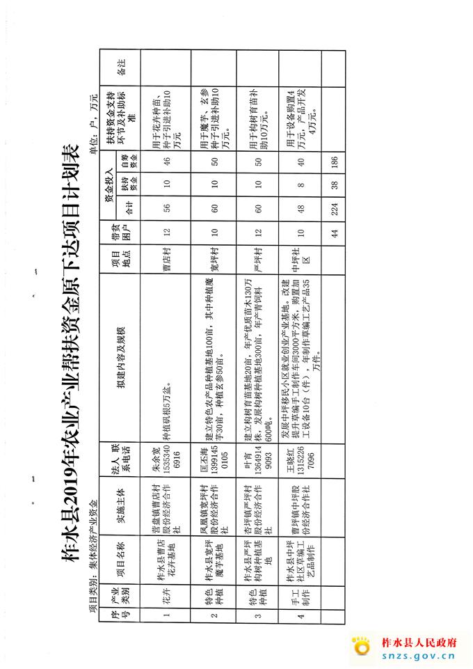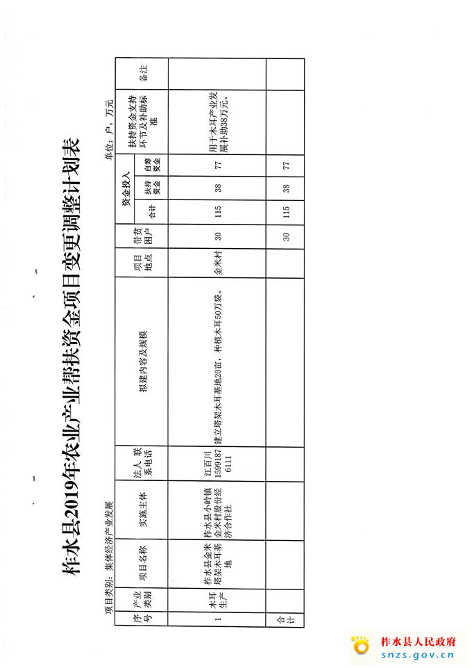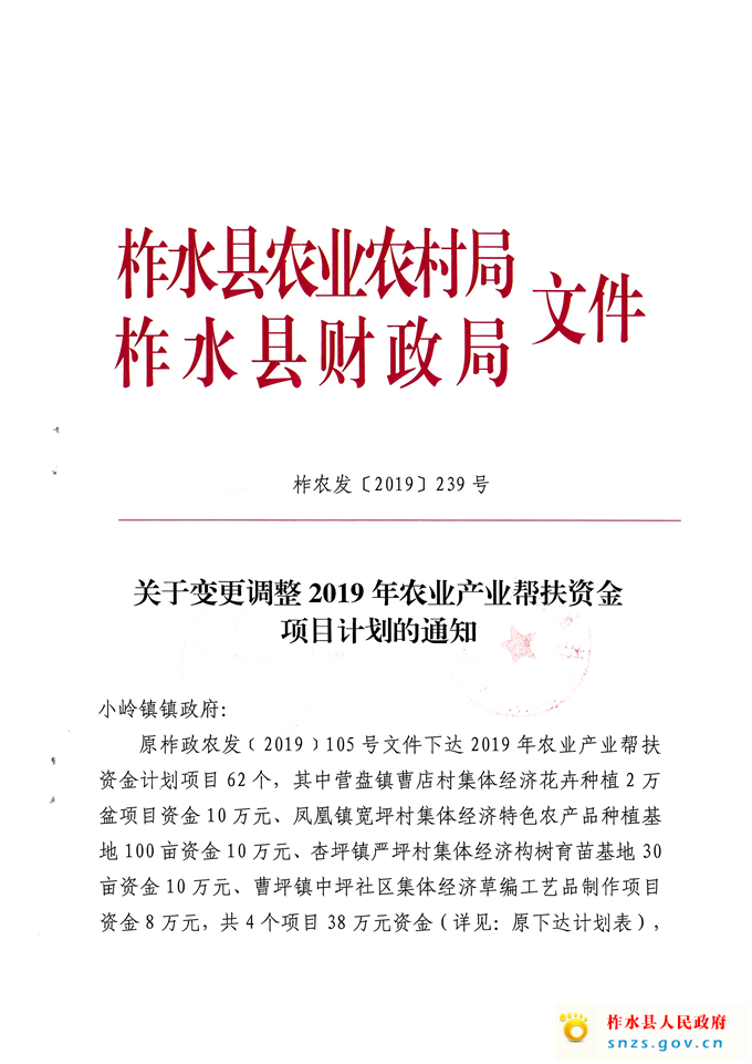 调整2019年农业产业帮扶资金项目计划的通知
