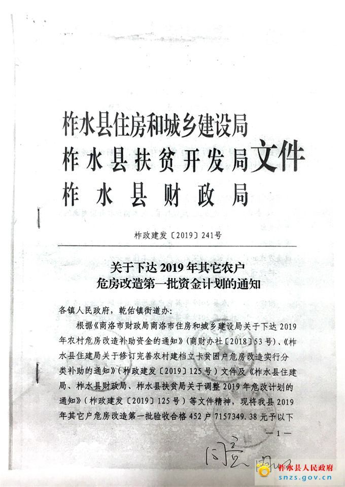 关于下达2019年其他农户危房改造第一批资金计划的通知