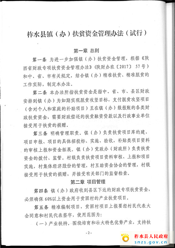 关于印发《柞水县镇(办)扶贫资金管理办法(试行)的通知