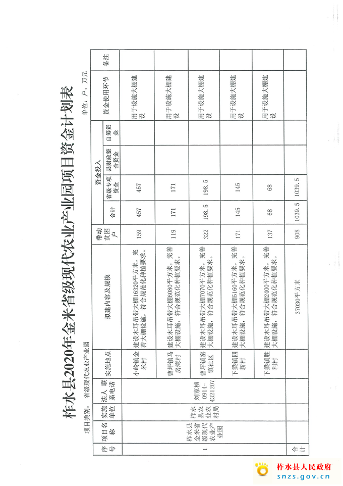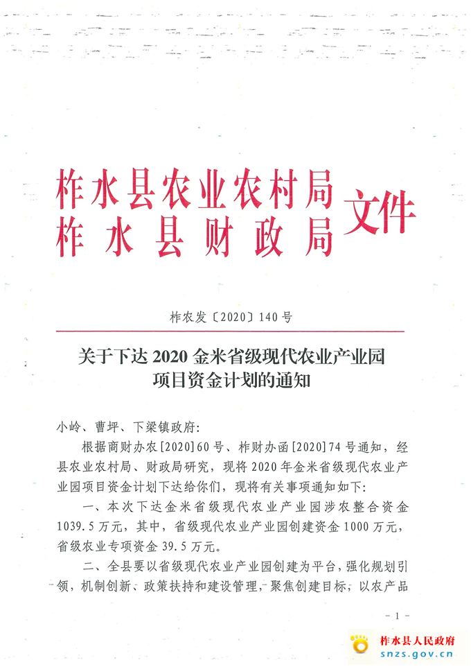 关于下达2020金米省级现代农业产业园区项目资金计划的通知