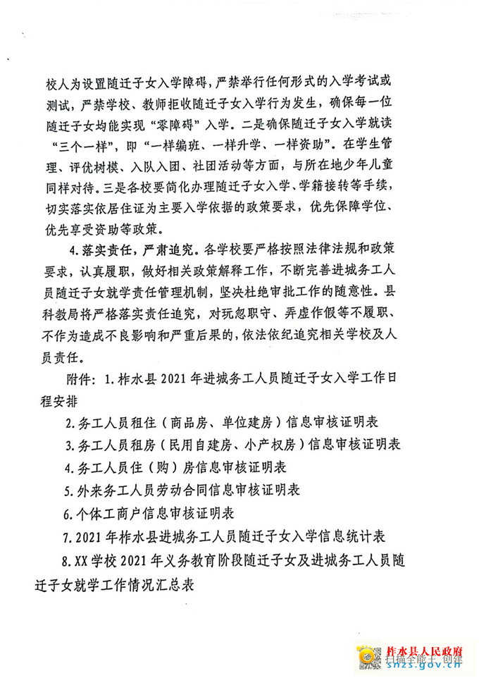 关于印发《柞水县2021年随迁子女入学工作实施细则》的通知