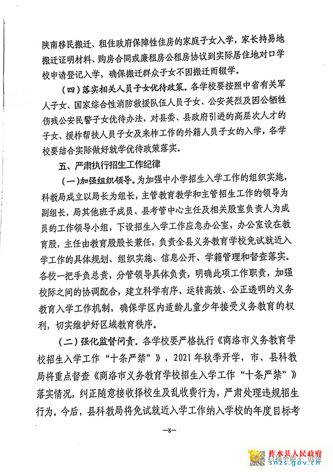 关于印发《柞水县2021年义务教育学校招生入学工作方案》的通知