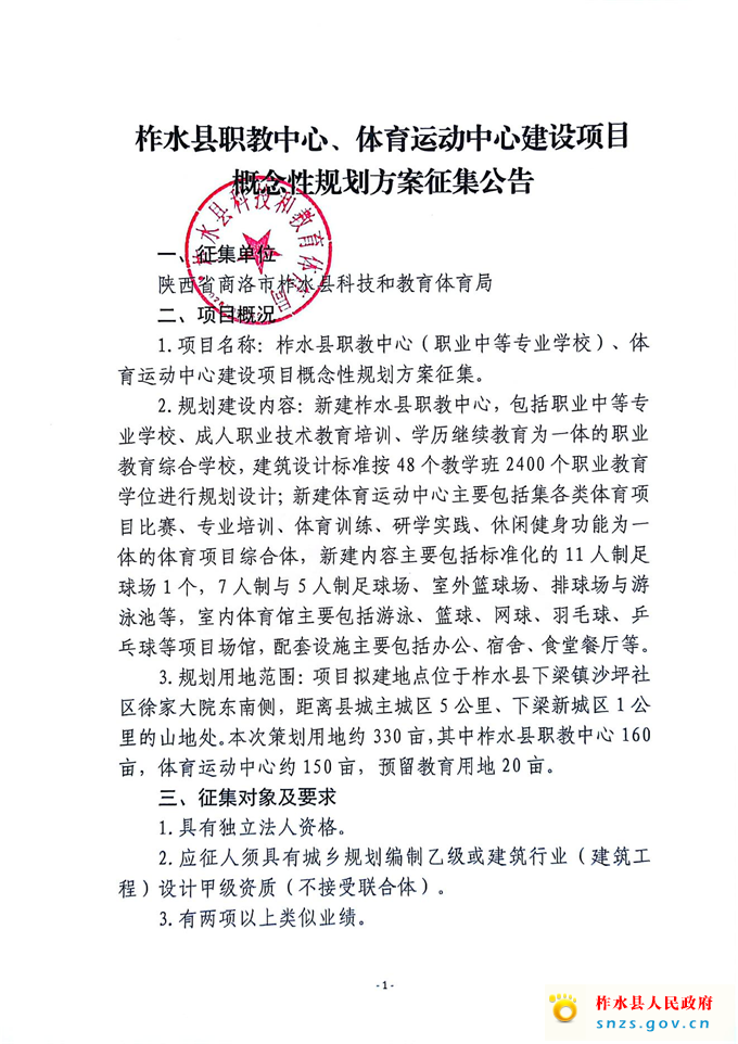 柞水县职教中心、体育运动中心建设项目概念性规划方案征集公告
