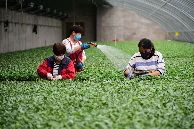 12月11日,河北省南和县贾宋镇一家现代农业示范园区工人在智慧温室内工作。新华社记者 朱旭东 摄